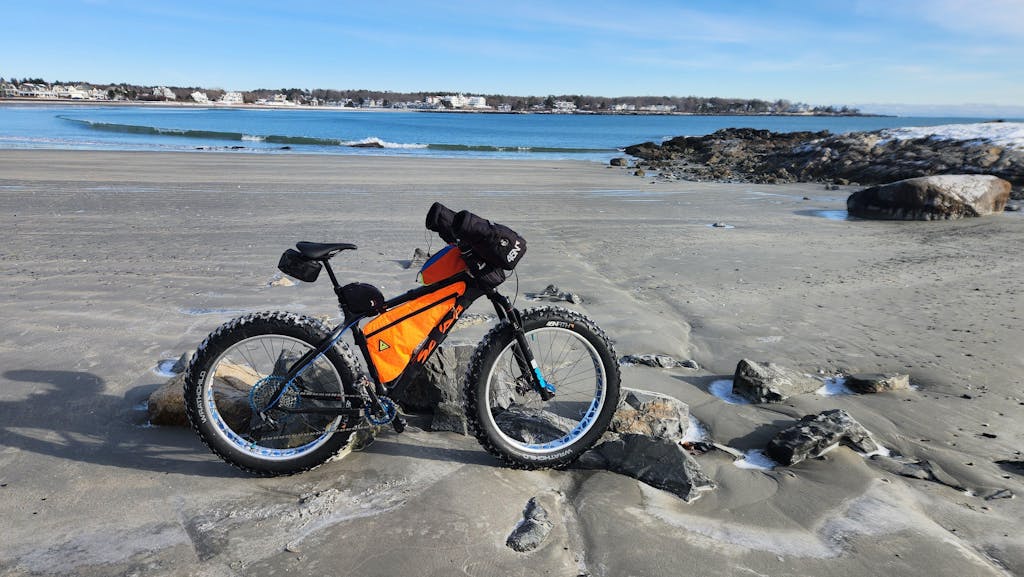 Simple perfectly fitted frame bag. The orange color is bright and hopefully noticeable to those distracted drivers here in Albuquerque and beyond.